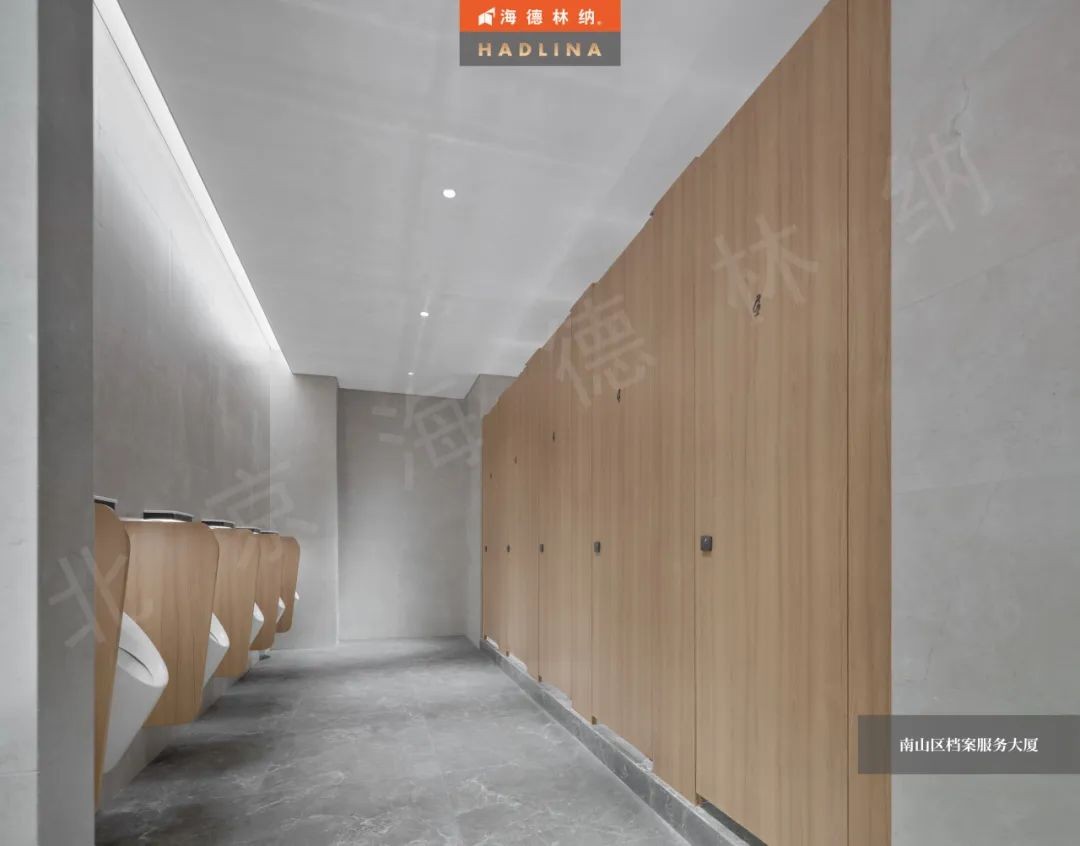 深圳檔案大廈衛生間隔斷采用原木色花紋,展現自然的魅力,恰到好處地融入空間,為整體增色不少。細膩的木紋質感,為使用者帶來溫暖與放松。在這溫暖的氛圍中,人們仿佛置身于自然之中,感受大自然的饋贈。